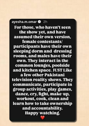 The actress stated that the show is produced entirely in Turkey. “It’s an Urdu language reality show, and was never meant for any Television Channel. No Pakistani Production house was ever involved. It’s a Turkish show/production… for YouTube only,” she said. Her comments aim to correct misleading reports that suggested the series was facing legal action or regulatory intervention in Pakistan.