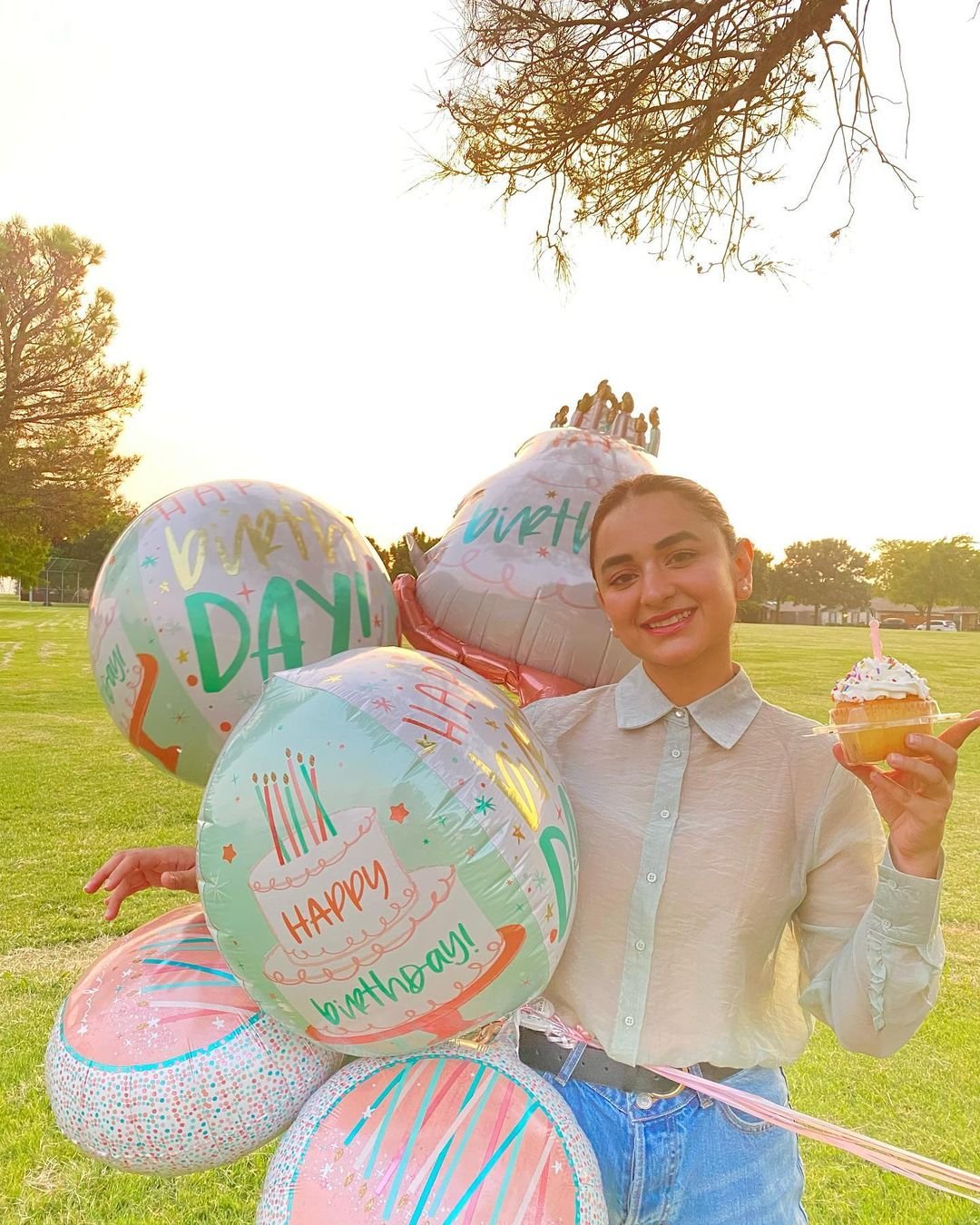 Pakistani showbiz’s joyful actress Yumna Zaidi celebrated her 32nd birthday today at a lush green park.